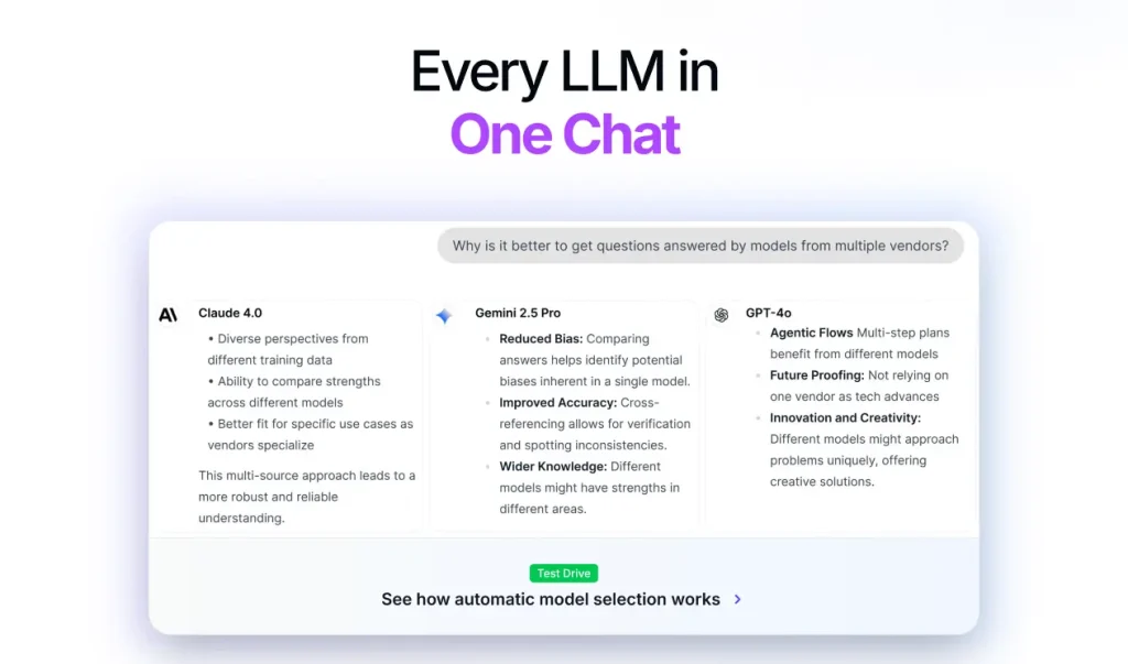 ChatBetter is an advanced AI-powered chat assistant designed to provide seamless, context-aware conversation across multiple domains, including customer support, productivity, and personal assistant workflows. Users simply ask their questions through a single interface, and the system intelligently determines whether to use models from OpenAI, Anthropic, Google, xAI, DeepSeek, Meta, or other major providers to deliver the most accurate response.